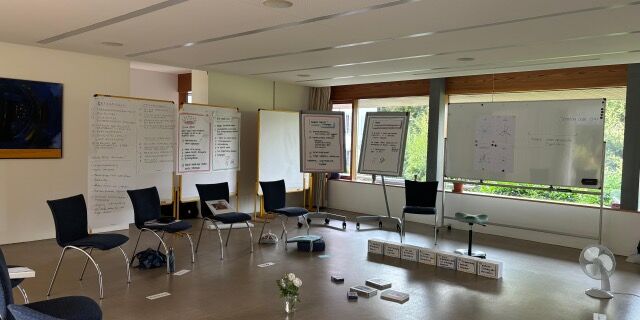 - Beamer in Decke, Leinwand und diverses Moderations-Material könnte bei Bedarf übernommen werden etc.